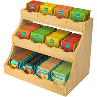 दीवार पर बड़ी 3 परतों में प्राकृतिक बांस चाय बैग कंटेनर बॉक्स भंडारण रैक घर, कार्यालय या कैफे के लिए